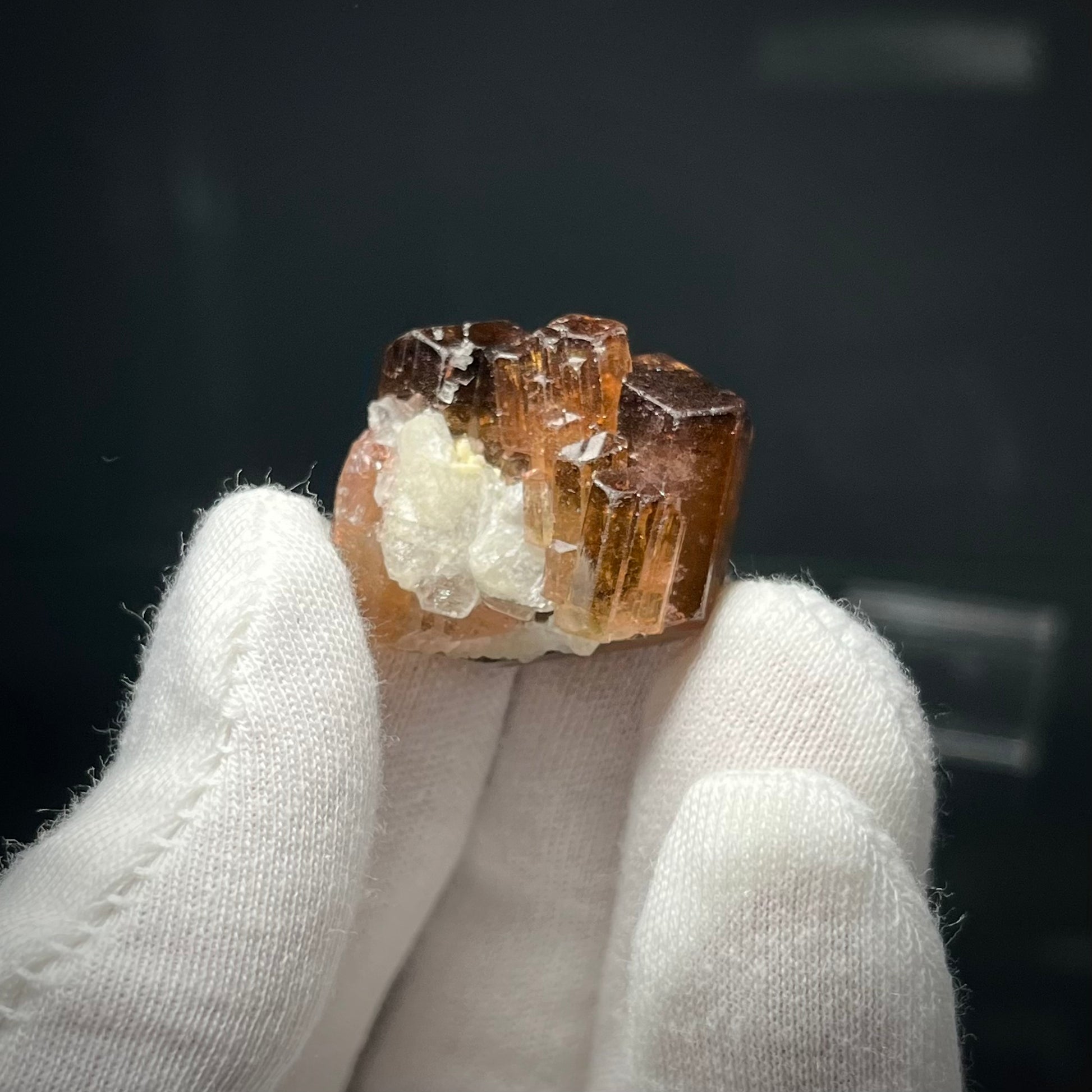 Doubly terminated bicolor Tourmaline Crystal. The crystal displays one end coming to multi stacked parallel growth terminations and the reverse side is larger recrystallized faces. Fluor-liddicoatite is a rare member of the tourmaline group, and elbaite subgroup. Ex. B. Kraft Coll.